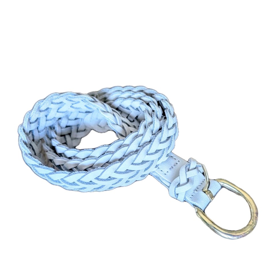 White Leather Belt Braided Womens Small Brass Buckle Waist 27-30" Guatemala