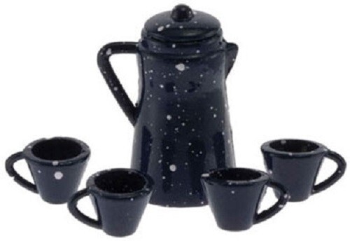 Dollhouse Miniature Blue Enamelware Spatterware Coffee Set (5 pcs) - 1:12 Scale