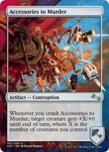 - Whenever you crank Accessories to Murder, target creature gets +X