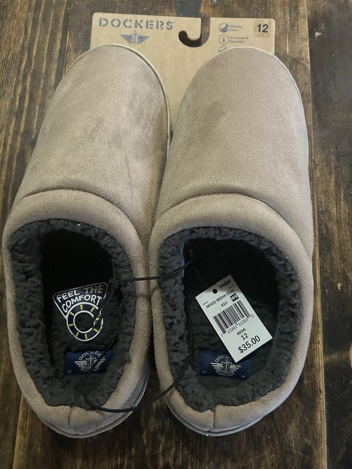 Dockers Men's Beige Temperature Regulated Memory Foam Slippers Size 12 NWT