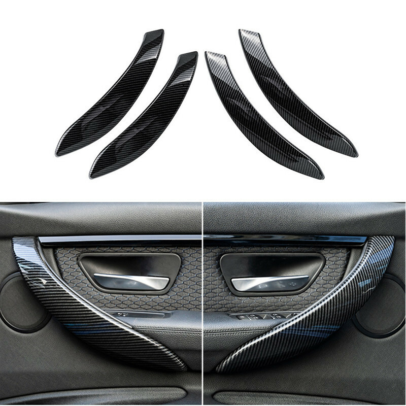 4pcs Carbon Look Interior Door Handle Cover Trim For Bmw 3 Series F30 2013-2018