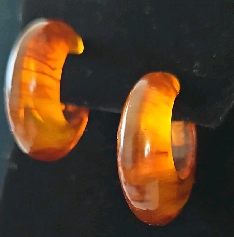 Vintage Crown Trifari Lucite Marbled Faux Tortoise Earrings Clip On
