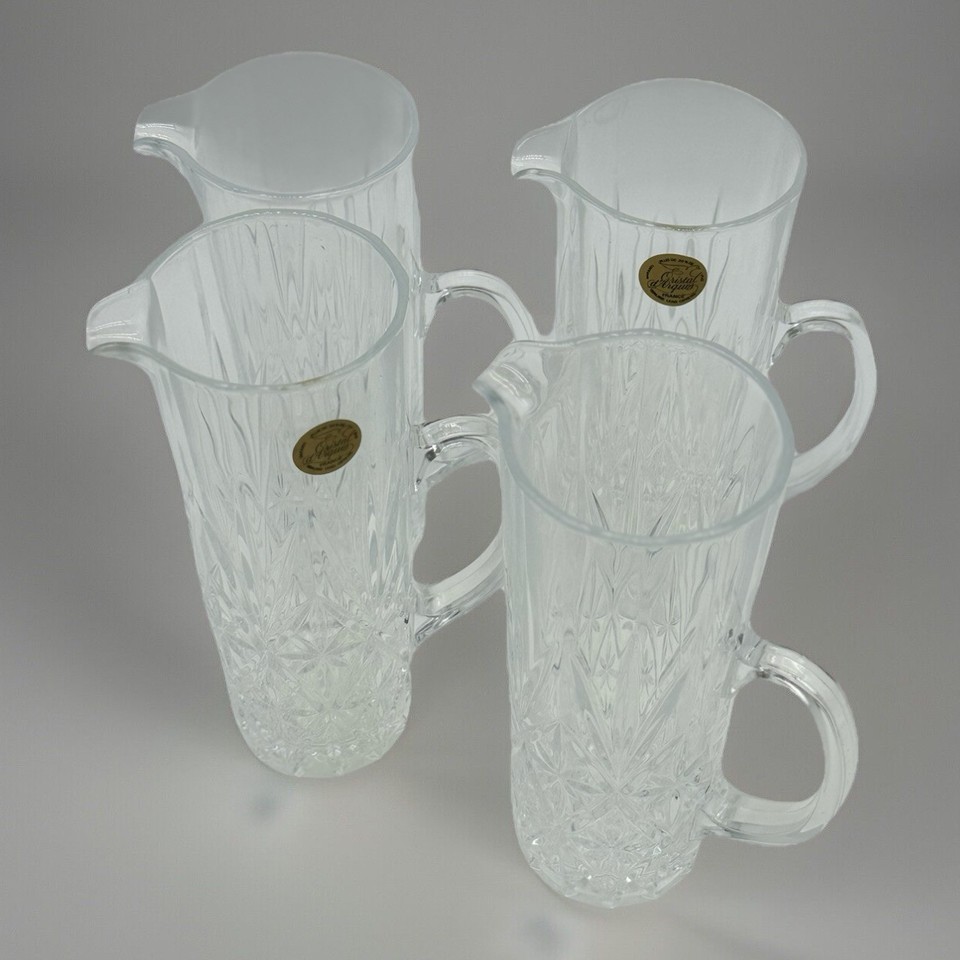 Vtg Cristal d'Arques-Duran d DANUBE Martini/Water Pitchers 7.25" FOUR pc. set