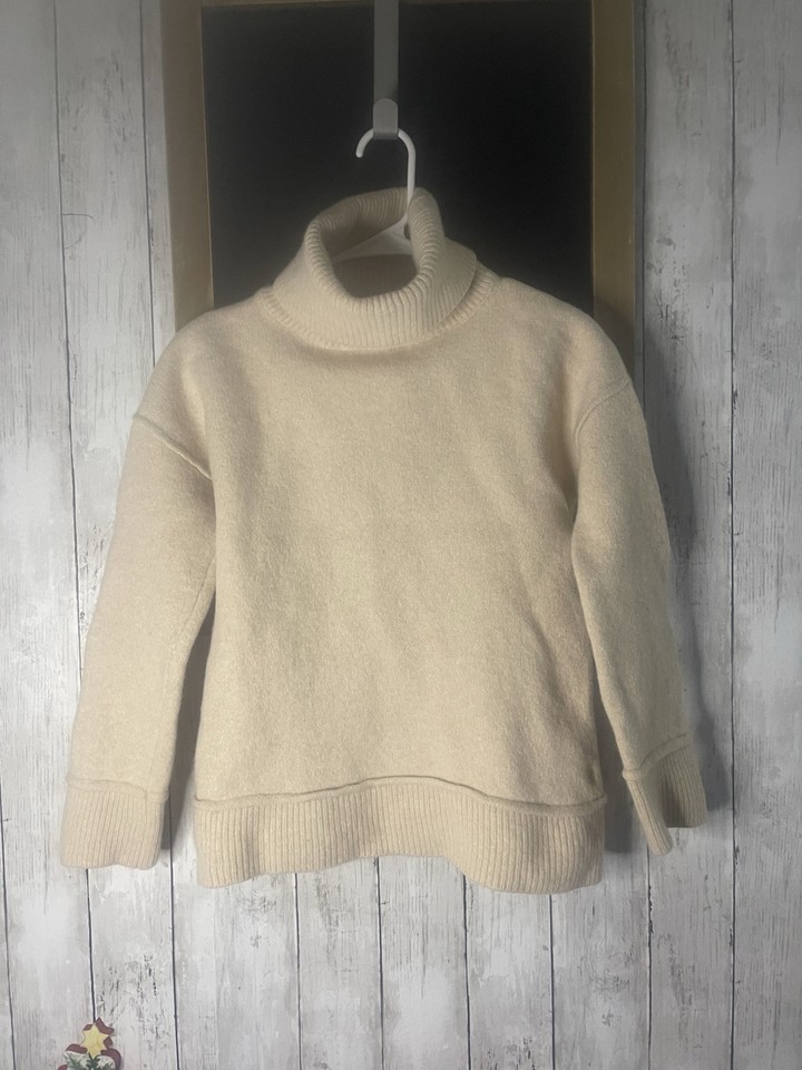 SWEATY BETTY Sz L Oatmeal Beige Wool Yak Turtleneck Knit Sweater Long Sleeve EUC