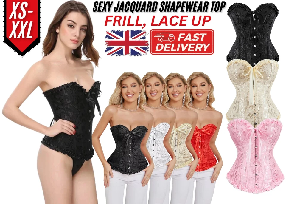 Women Sexy Overbust Boned Corset Burlesque Basque Top Lace-Up Costume Party