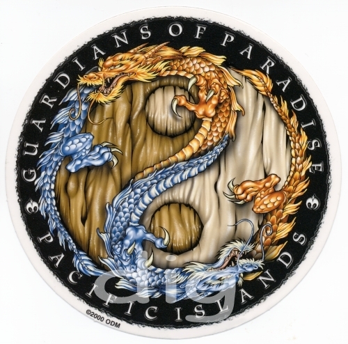 GUARDIANS OF PARADISE PACIFIC OCEAN Yin Yang Wooden Dragons BOAT Sticker/Decal