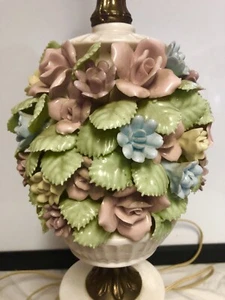 CAPODIMONTE FLORAL LAMP ROSES FLOWERS URN Base NO DAMAGE