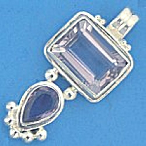 P274 Sterling Silver Amethyst Pendant Charm 1.5" New Solid 925