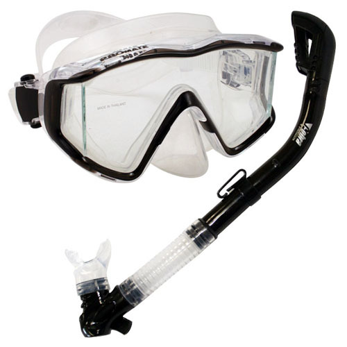 Scuba Dive Snorkeling Panoramic Mask 100% Dry Top Snorkel Tube Package Gear Set