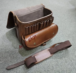 Antique Texture Cowhide Leather Hunting Shotgun Cartridges Holder Ammo Bag