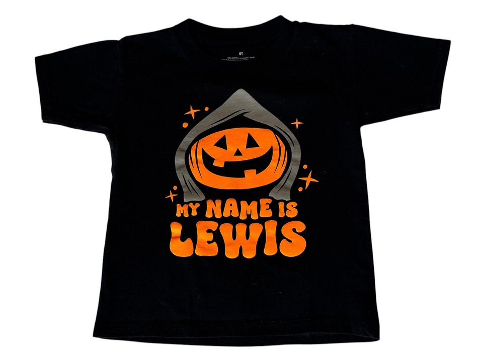Halloween Pumpkin T~Shirt "My Name Is Lewis" Size 5T