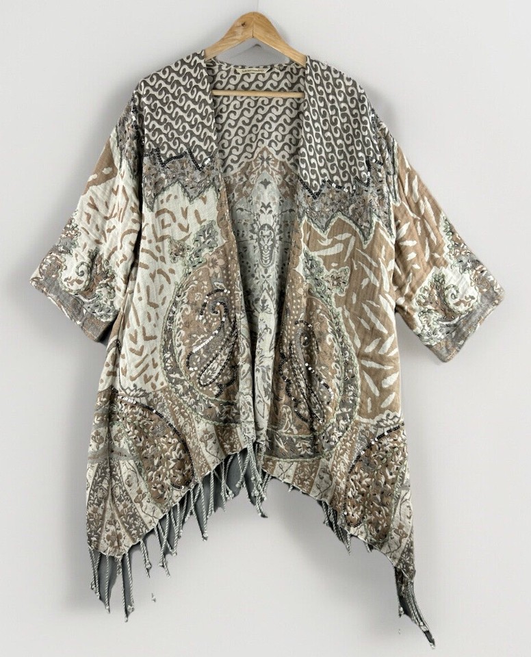 Soft Surroundings Women's Cardigan Sz PL/PXL Fringed Sequined Embroidered Boho