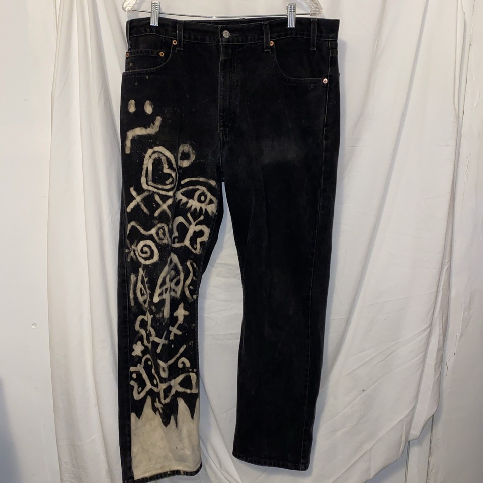 Levi’s 505 Jeans 36x30 Black Denim Custom Bleach Art Distressed Y2K 2001 Vintage