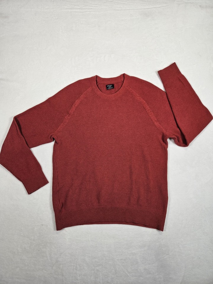 Untuckit Sweater Men's Large Red Cable Knit Cotton Polyester Blend LS