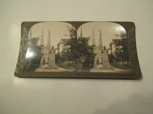 Norge Norway Skiens Kirke med Ibsens park I Forgrund Stereoview Card