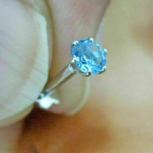3MM Round Lab-Created Aquamarine Solitaire Stud Nose Pin 14k White Gold Plated