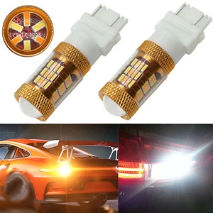 2x 3157 T25 4157NA LED DRL Turn Signal Light Switchback Bulb 54SMD White/Amber