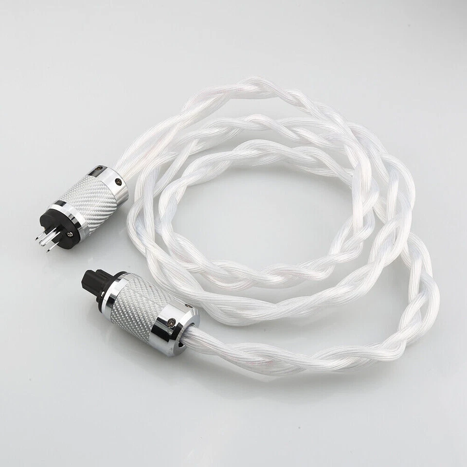 5N OCC US AC Audiophile Carbon Fiber Silver Rhodium Plated HiFi Power Cable NEW