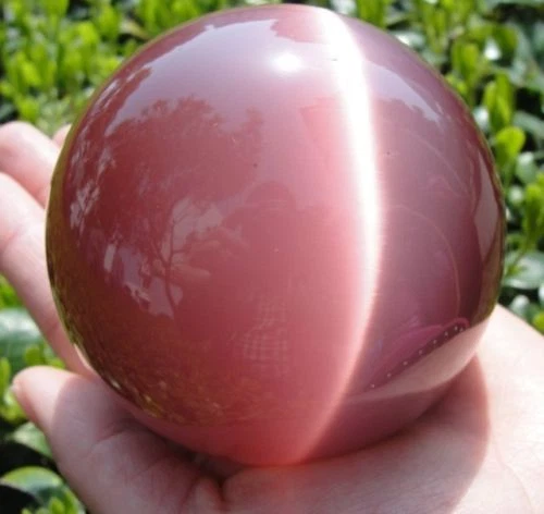 VERY BEAUTIFUL ASIAN QUARTZ PINK CAT EYE CRYSTAL BALL SPHERE 80MM + STAND AA