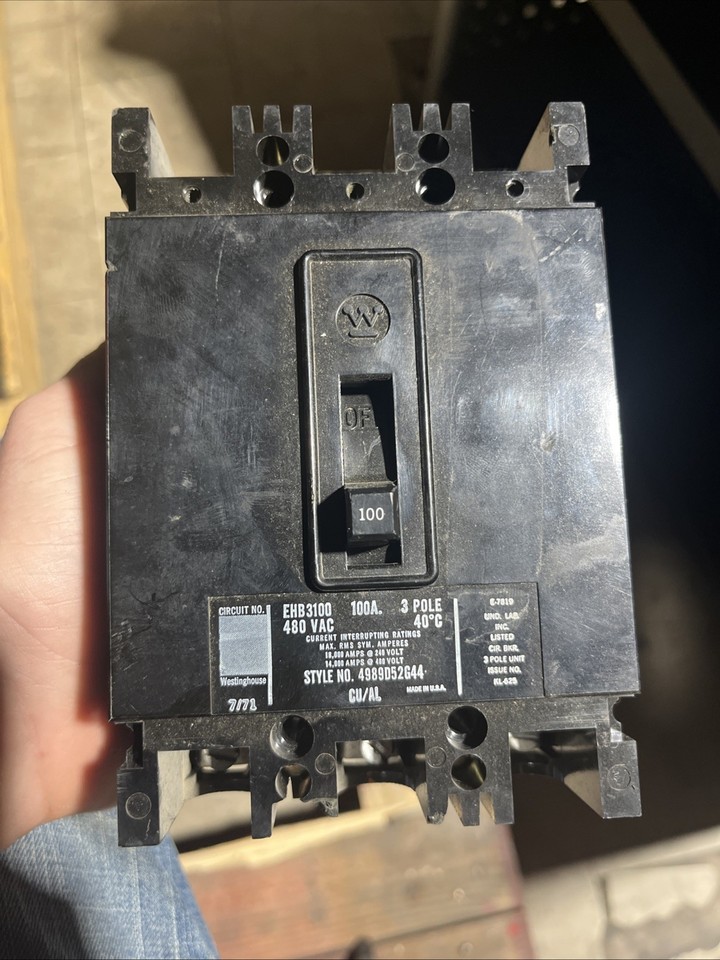 Westinghouse EHB3100 Circuit Breaker 100 Amp 480 Volt 3 Pole