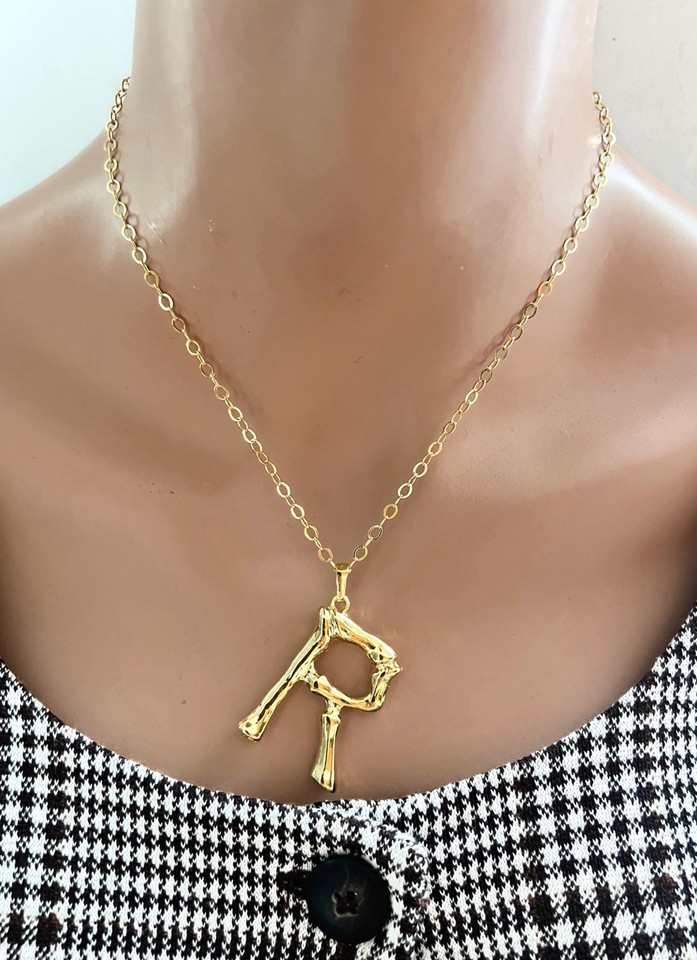 Large Initial Necklace Gold Bamboo Letter Necklace Personalized Necklace