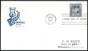 “1940 Walt Whitman poet Sc 867-5 FDC House of Farnam, Leaves of Grass free verse”