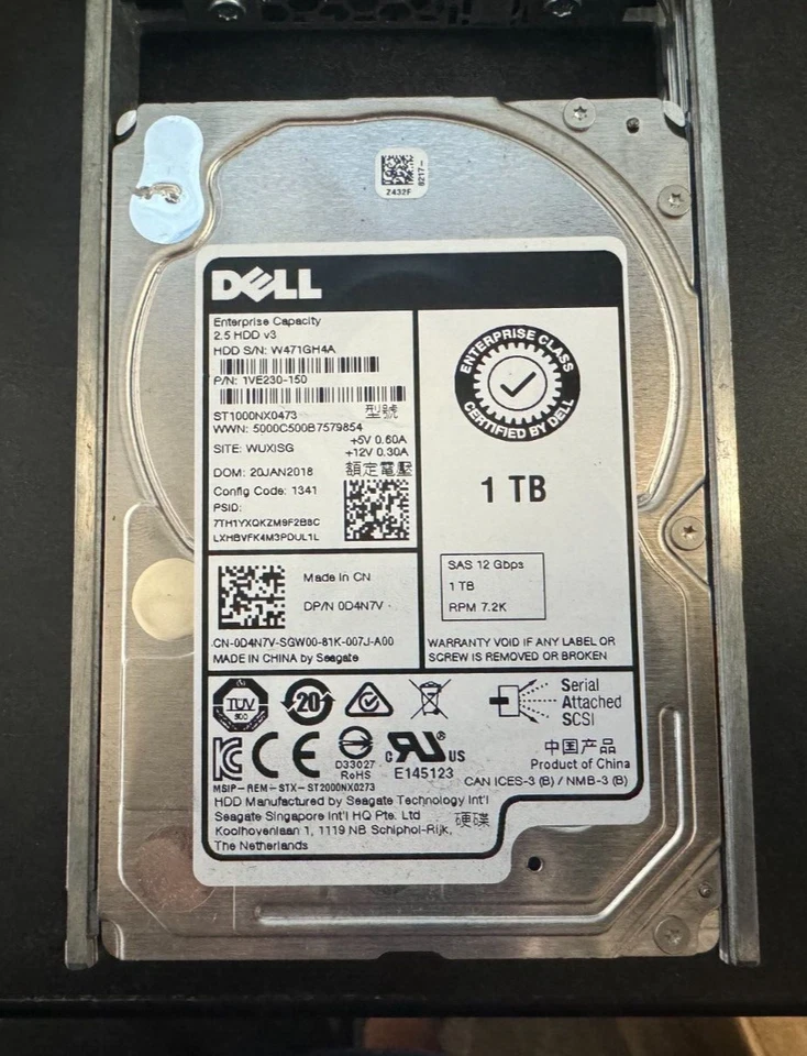 For Dell 1TB SAS 12G 7.2K SFF 512n HDD Seagate ST1000NX0473 0D4N7V NEW