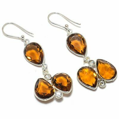 Smoky Topaz Gemstone 925 Solid Sterling Silver Jewelry Earring 2.29 " Q994