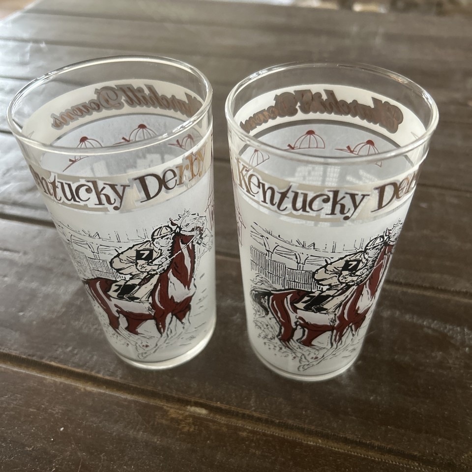 2-1963 Kentucky Derby, souvenir, Mint Julip glass, 5.25" Church Hill Downs 12 oz