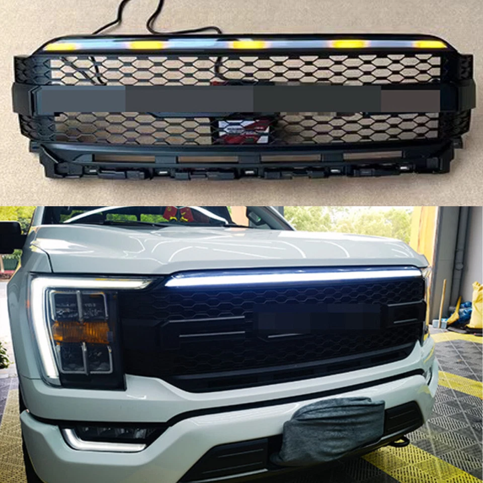 1X Black Front Grille Radiator Mesh Fits for F150 2021 2022 W/Light Letter