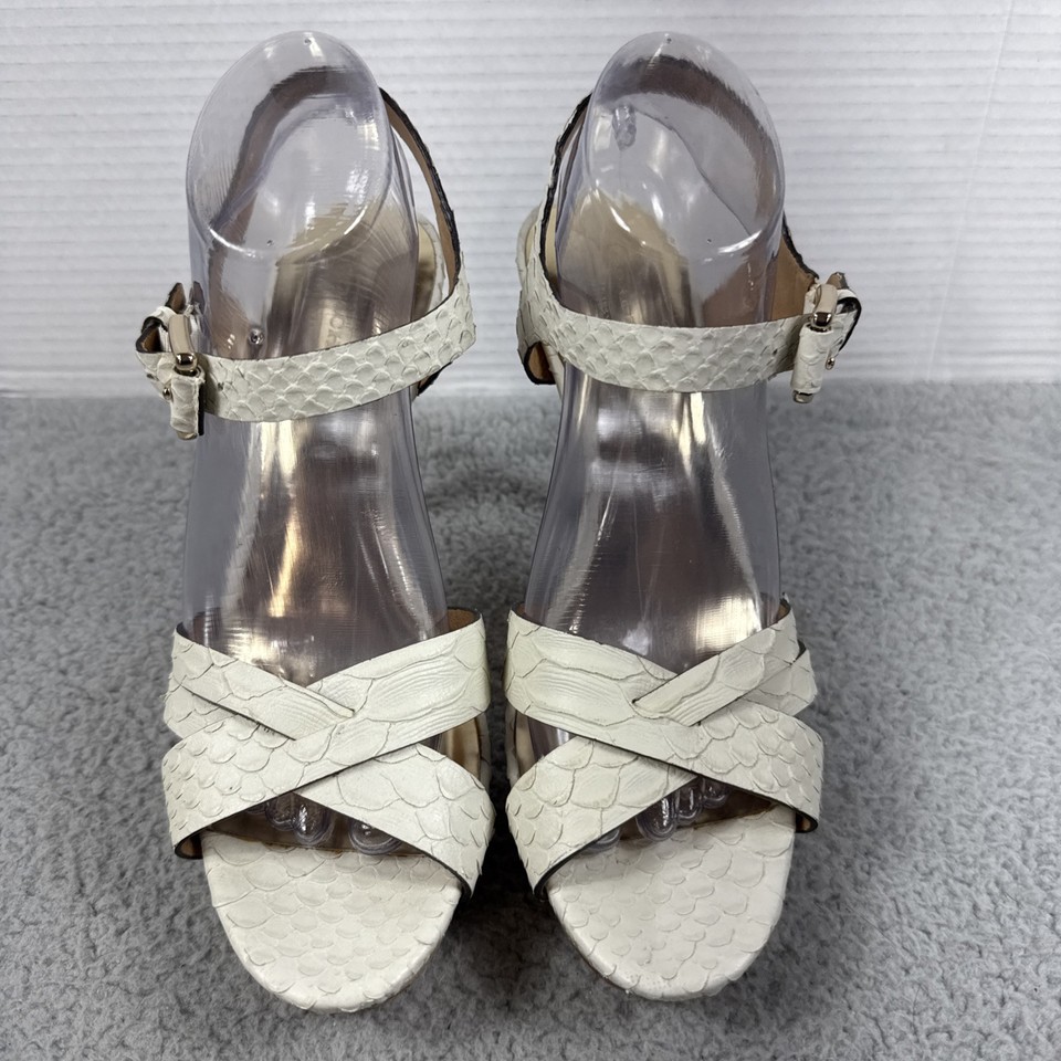 Coach 'Dani' White Snake Platform Sandals Heels Women's SZ 10 Chalk Ivory Straps