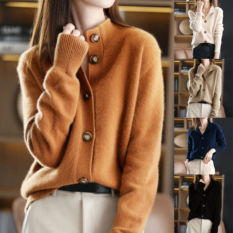 Winter Women Cashmere Sweater Crochet Cardigan Knitwear Coat Tops Outwear Blouse