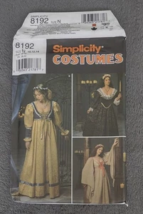 Simplicity Renaissance Medieval Costume Pattern 8192 Size N Misses' 10,12,14 UC