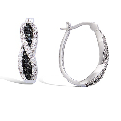DOLLY-BIJOUX BOUCLE OREILLE ARGENT RHODIE CREOLE TRESSE OXYDES BLANCS et NOIRES