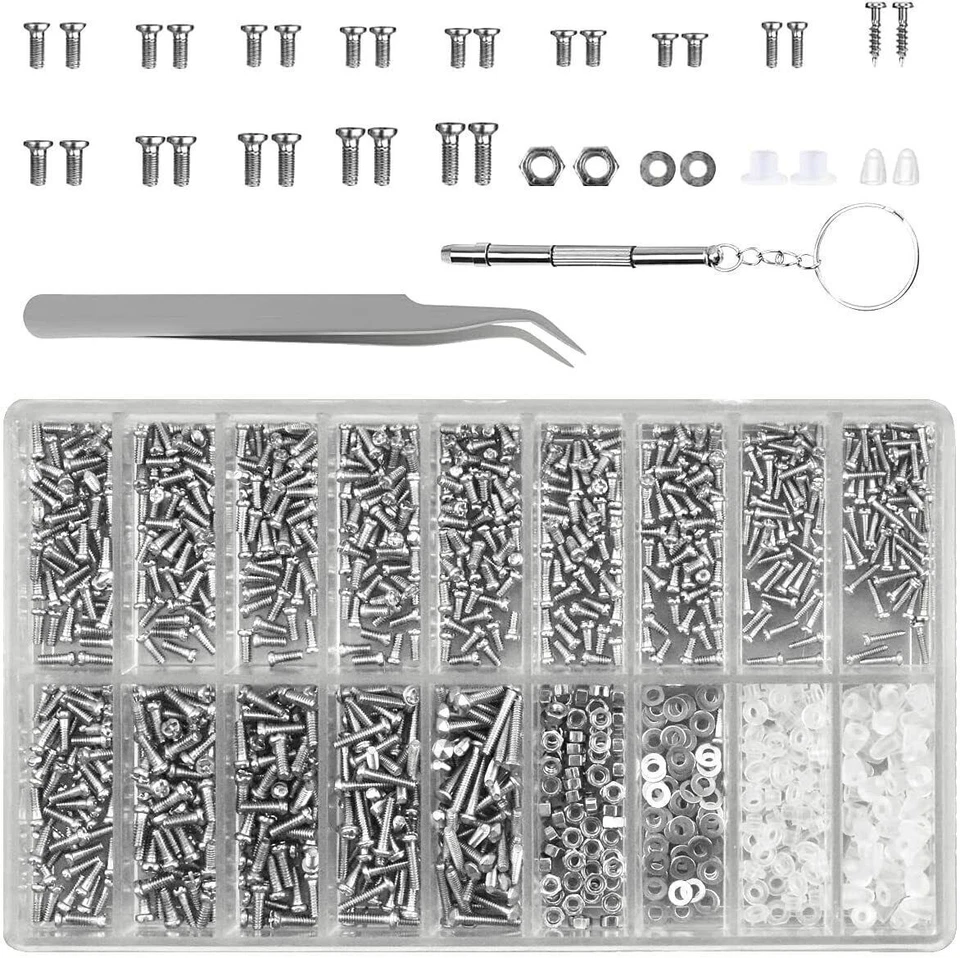 1200x Micro Screw Nuts Set M1 M1.2-M2.5 Glasses Screw For Glasses/Watche s