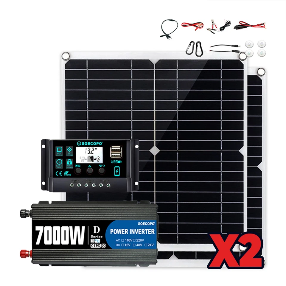 Complete 7000W Off-Grid Solar Kit 7000W Inverter 2pcs 300W Solar Panels 110V/220