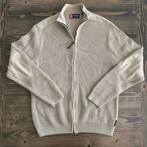 Chaps Mens Beige Cotton Knit Cardigan Sweater Zip up Size L Elbow Patches