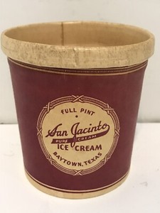 VINTAGE SAN JACINTO ICE CREAM CARTON 1 PINT BAYTOWN TX NESTYLE SEALRIGHT CO