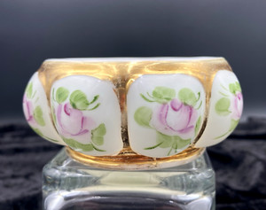 Vtg. Charleton Fenton Milk Glass Pink Roses/Gold Gilt Powder Puff, No Lid, #192
