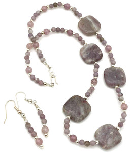 Natural Kunzite Gemstones, Beads & Sterling Silver Necklace & Earrings Jay King