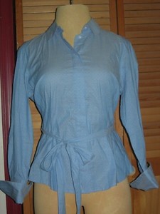 LANE BRYANT 26 Blue & White Dots Dobby Cotton Blend Signature Shirt w/ Tie 26W