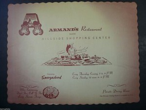 Vintage Armand's Hilllside Shopping Center Restaurant Paper Placemat