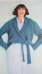 Pattern For Lady's Tie Front Cardigan With Cable In Aran yarn.-Sizes 32-48ins