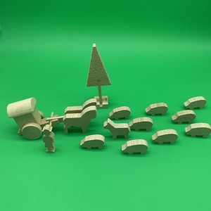 Erzgebirge Vintage Miniatures Unpainted Raw Wood Germany Farm Horse Cart Man Pig