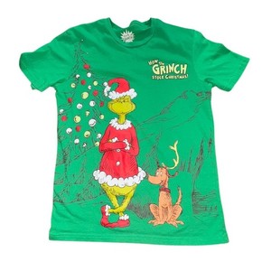 The Grinch Graphic Print Short Sleeve Crew Neck T-Shirt-Green-Small (adult)-GUC