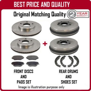 FRONT BRAKE DISCS & PADS AND REAR DRUMS & SHOES FOR KIA RIO 1.5 7/2001-7/2002