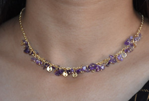 Handmade Natural Amethyst Chip Bead Necklace Rosary Style Uncut Gemstone Jewelry