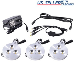 3X ABI 3W LED Puck Light Kit with Adapter & Splitter for Under Cabinet Lighting