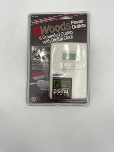Woods 6 Grounded Outlets Wall Adapter White 125V 15A 1875W with Digital Clock