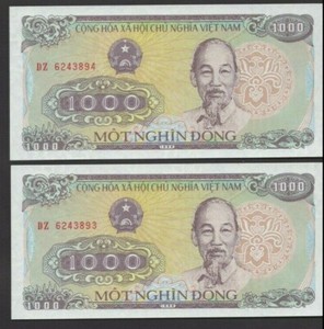 Vietnam … P-106a … 1000 Dong … 1988 ...* CHOICE UNC * Consecutive pair.